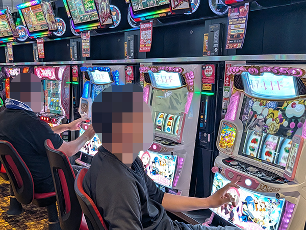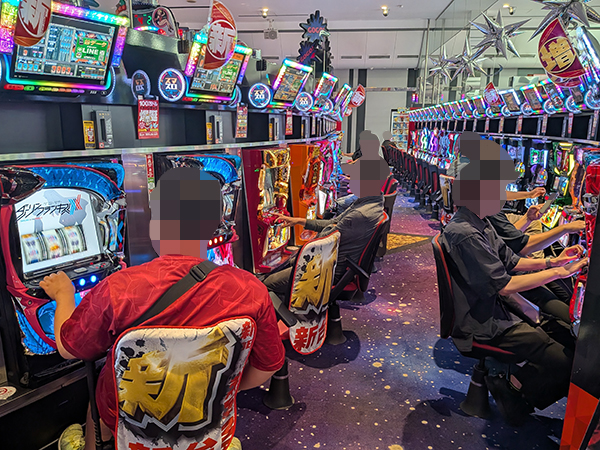 5.495円パチスロの支持も厚く、様々な機種で楽しそうにレバーを叩くプレイヤーが見られた。