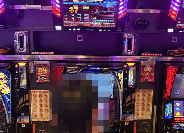 取材時の「eぱちんこ押忍!番長 漢の頂」と「eシャーマンキング でっけぇえなver.」に、10,000ptを超えている台アリ。