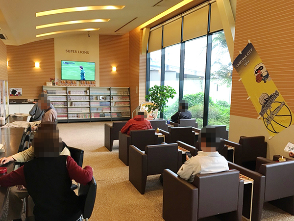 同店はレストスペースに大きめの椅子を設置。漫画本も数多く用意され、ゆったりとくつろげる空間となっている。