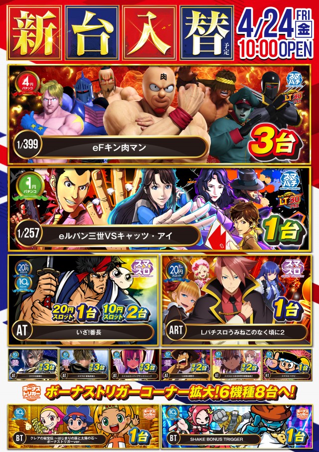 明日4月24日 新台入替初日‼朝10時オープン(予定)