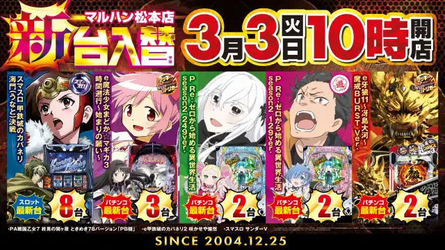 本日新台入替(予定)♬朝10:00オープン!抽選は9:40!
