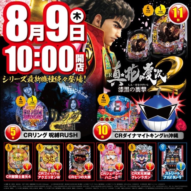 8月9日 新台入替(予定) 9機種34台導入予定!!