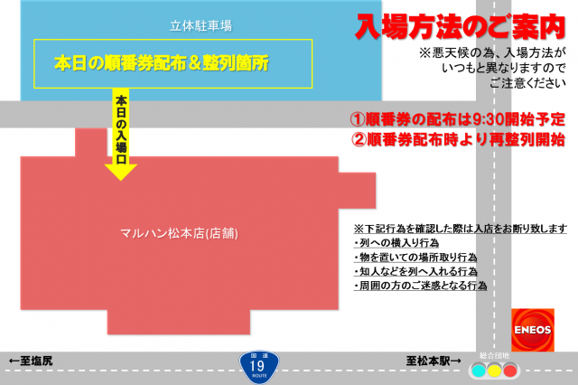 AM9:30~入場抽選参加券配布開始。9:40~抽選開始(予定)となります。 |