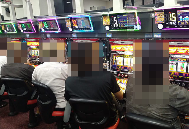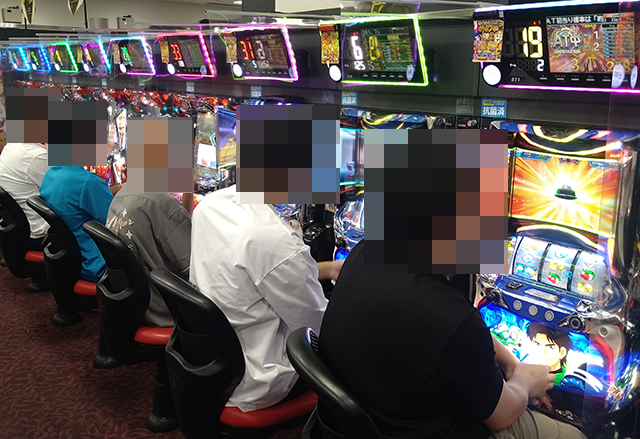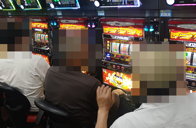 パチスロにおいて、設置台数がとくに多い「アイムジャグラーEX」が盛況。なかでも、426番台から430番台までに目をひかれた。