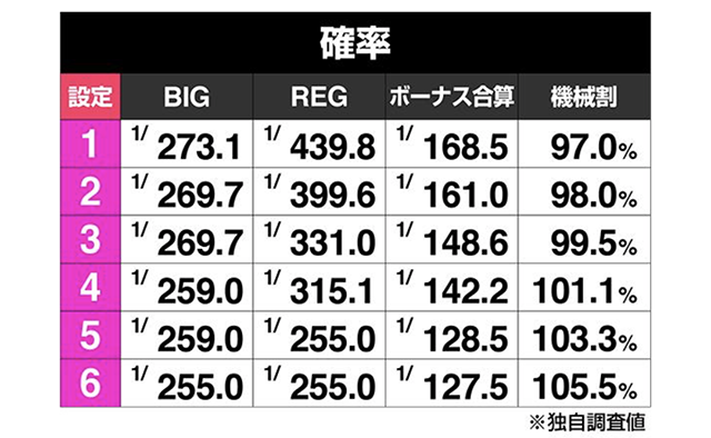ボーナス合算確率を中心に設定推測を進めよう。