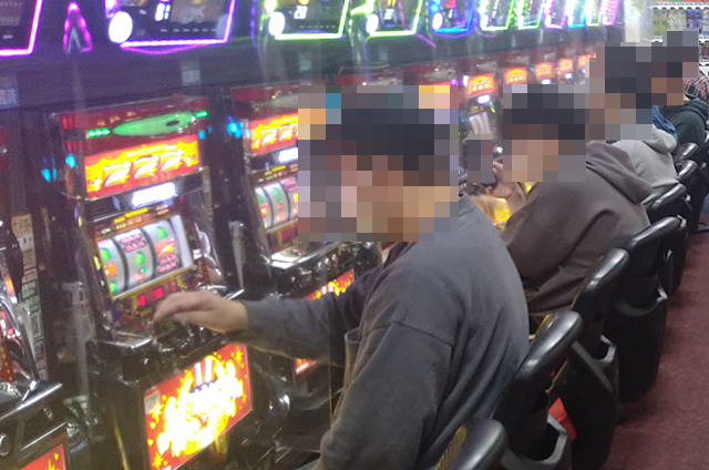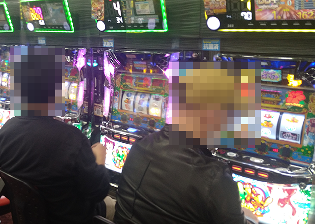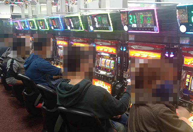 パチスロコーナーをみてみると、AT機やボーナスタイプなど、さまざまな機種が楽しまれていた。