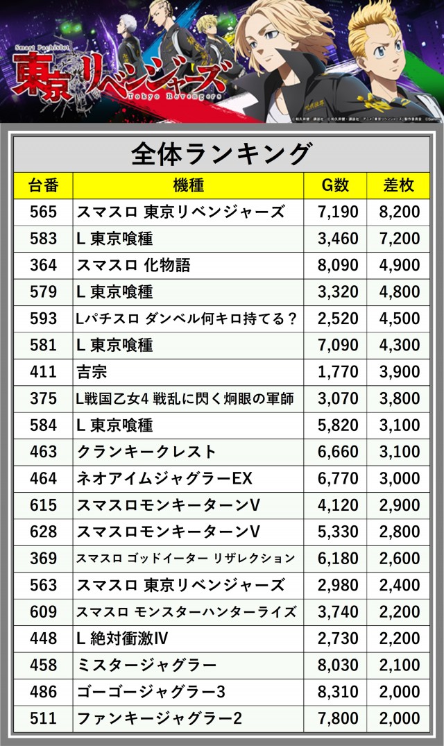 厳選された取材対象機種をはじめ、その他スロット全体から好記録が飛び出した!プレイヤーが楽しんだ1日を下記データにて振り返ってみて欲しい。