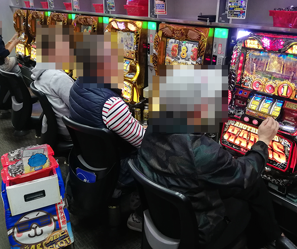 「ハナビ」やジャグラーシリーズといったボーナスタイプの盛り上がりも大きい。うれしそうな表情でレバーを叩いている姿からは、満足度の高さも伝わってきた。