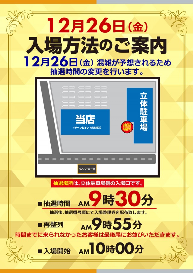9:40~抽選開始 再整列9:55~ 入場10:00 |