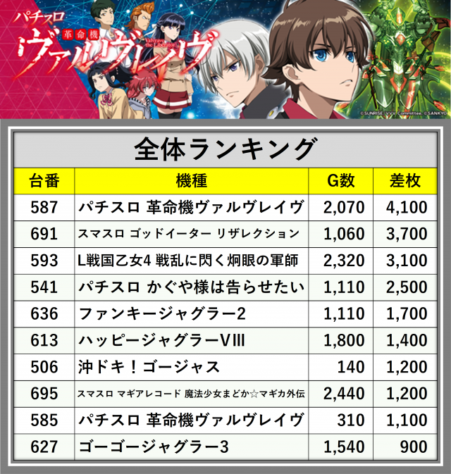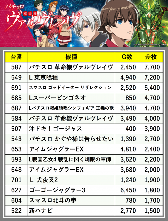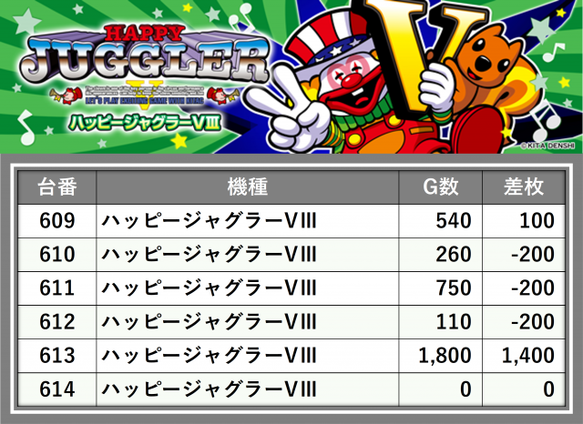 厳選された取材対象機種をはじめ、その他スロット全体から好記録が飛び出した!プレイヤーが楽しんだ1日を下記データにて振り返ってみて欲しい。