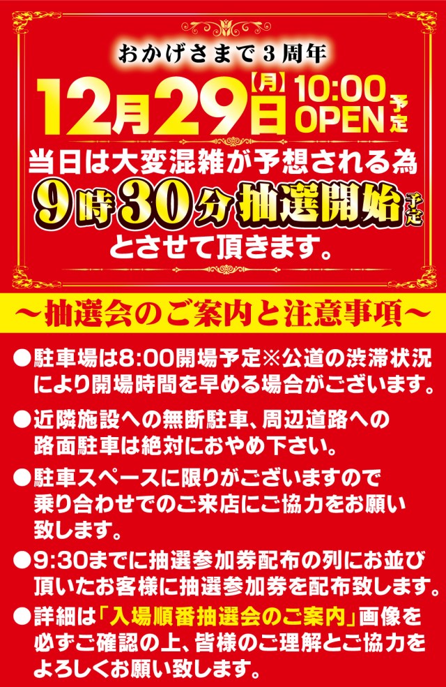 抽選詳細は最新情報の画像にてご確認お願いします。 |