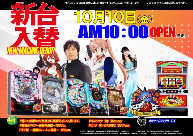 明日、新台入替オープン!皆様のご来店お待ちしております。