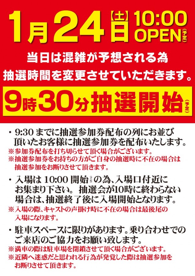 9:30抽選開始予定‼