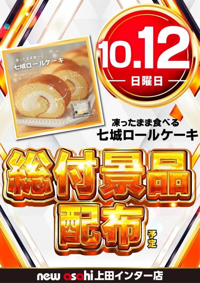 ☆総付景品配布×アサ盛取材☆10月12日【日】9:40抽選!
