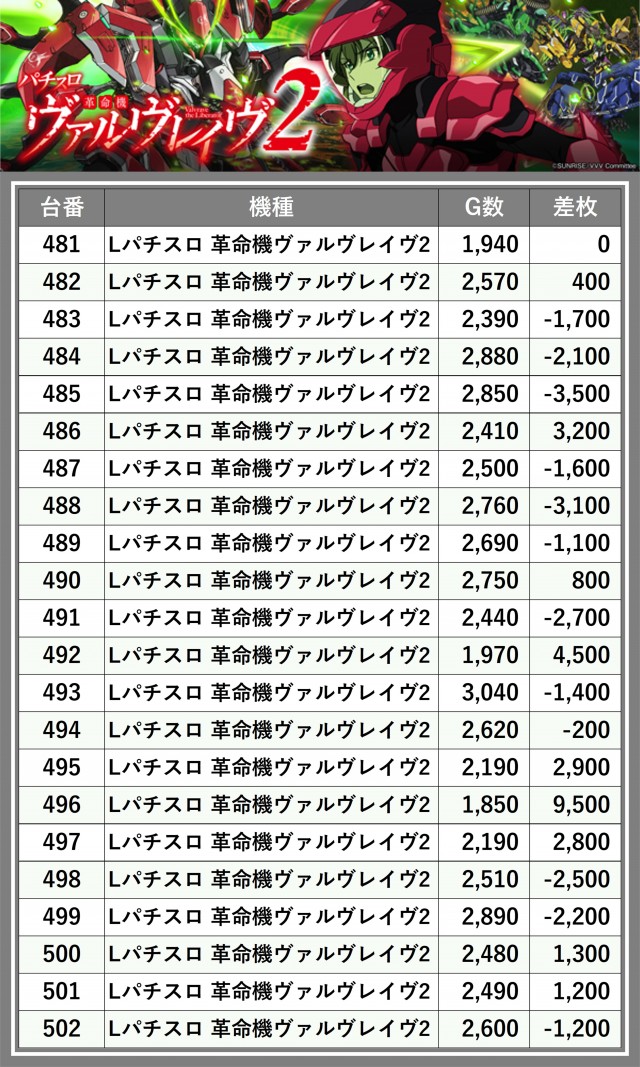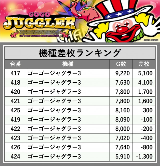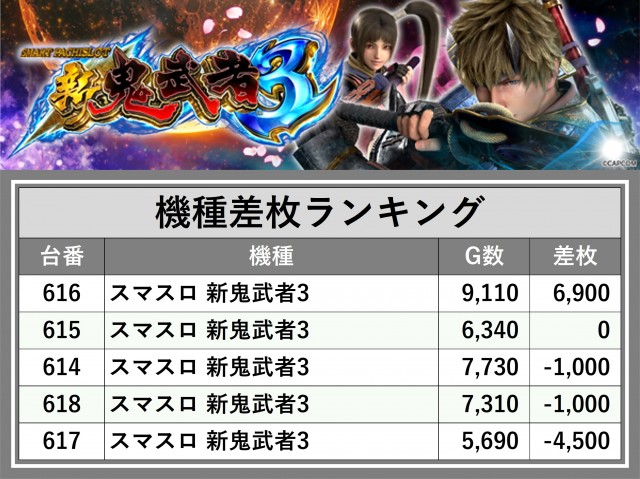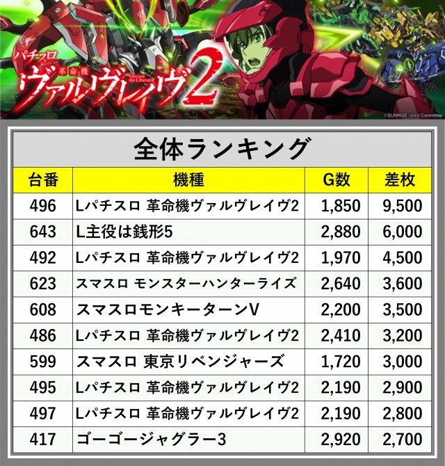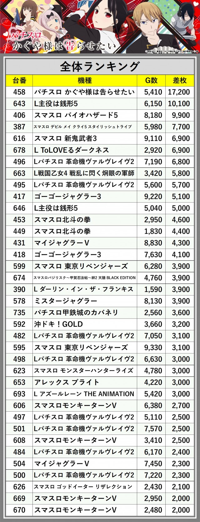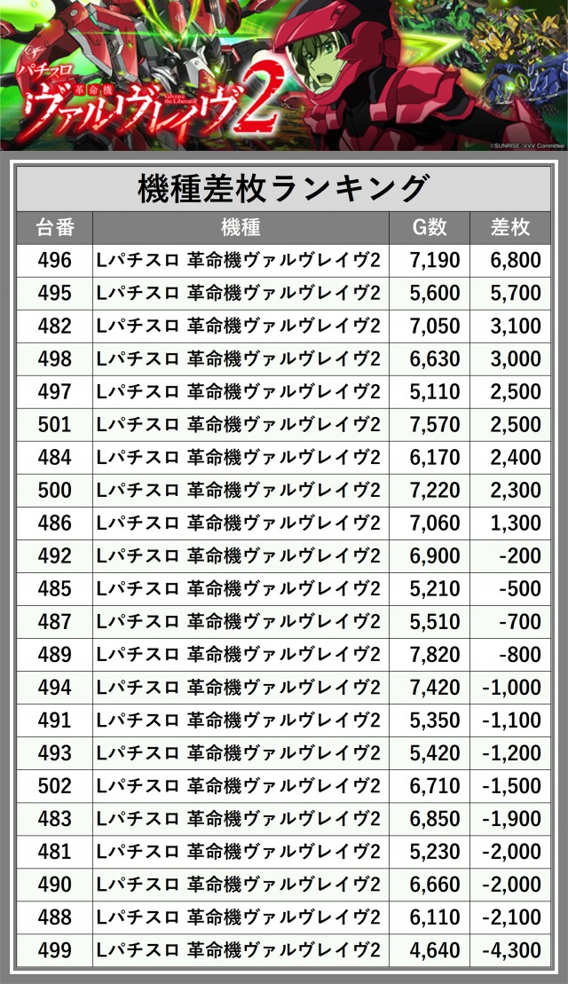 ※差枚数順に掲載しています