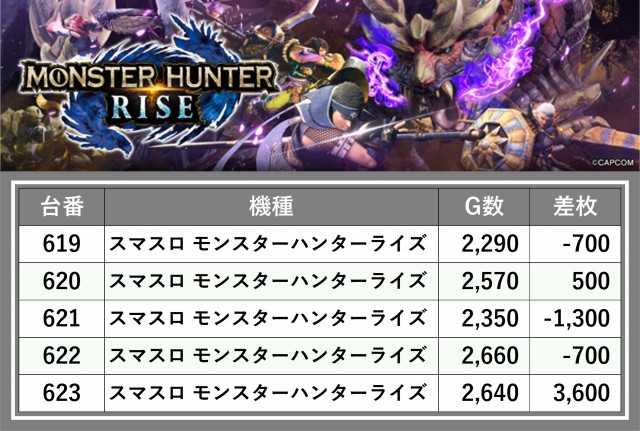 厳選された取材対象機種をはじめ、その他スロット全体から好記録が飛び出した!プレイヤーが楽しんだ1日を下記データにて振り返ってみて欲しい。