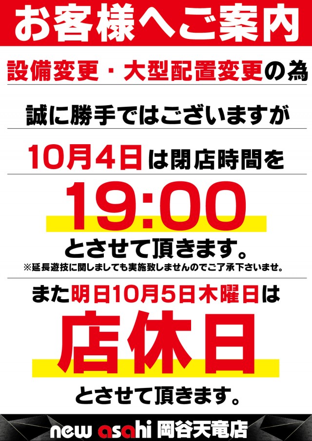 明日◆10月2日【月】◆≪天竜店≫連日10:00OPEN!