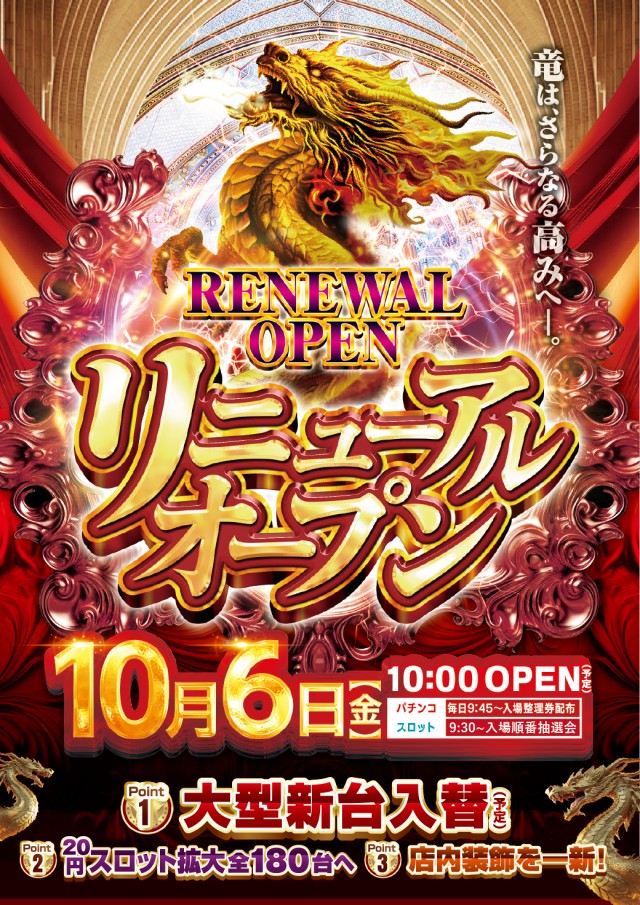 竜は、さらなる高みへ。 本日10:00 OPEN(予定)!!