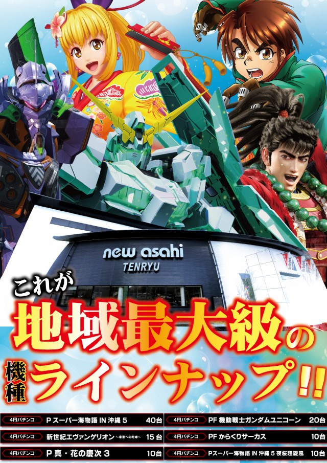 お盆も最新台を打つなら≪天竜店≫連日10:00OPEN!