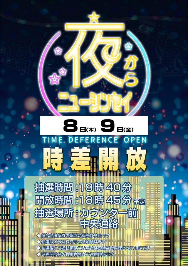 本日時差開放!!