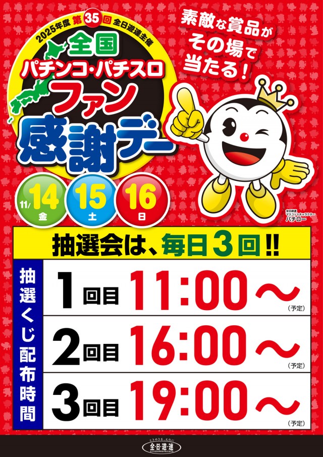9:00~9:25抽選参加券発券 9:30~抽選開始※混雑防止の為、時間が変更する場合も御座います。詳しくは店内にて※ |