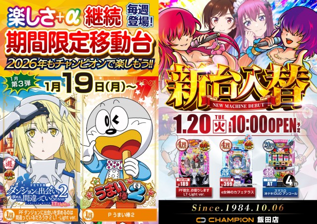 明日13日★チャンピオン飯田店★新台入替OPEN予定★