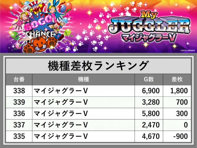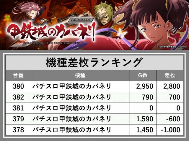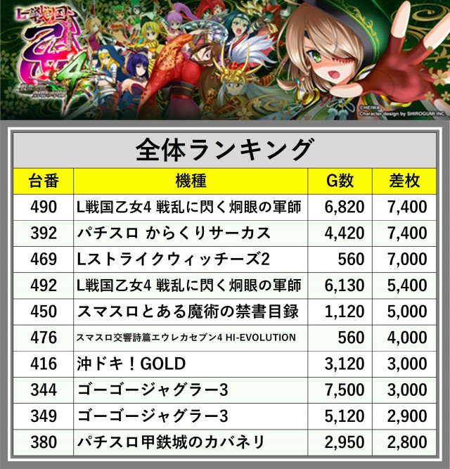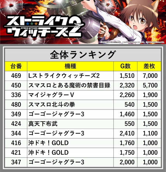※差枚数順に掲載しています