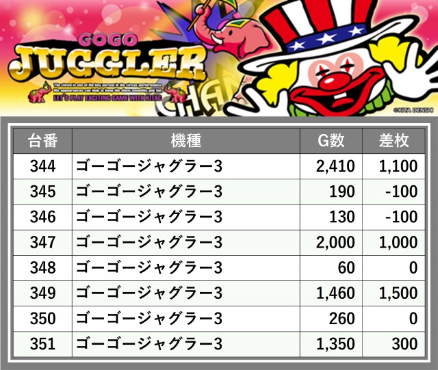 厳選された取材対象機種をはじめ、その他スロット全体から好記録が飛び出した!プレイヤーが楽しんだ1日を下記データにて振り返ってみて欲しい。