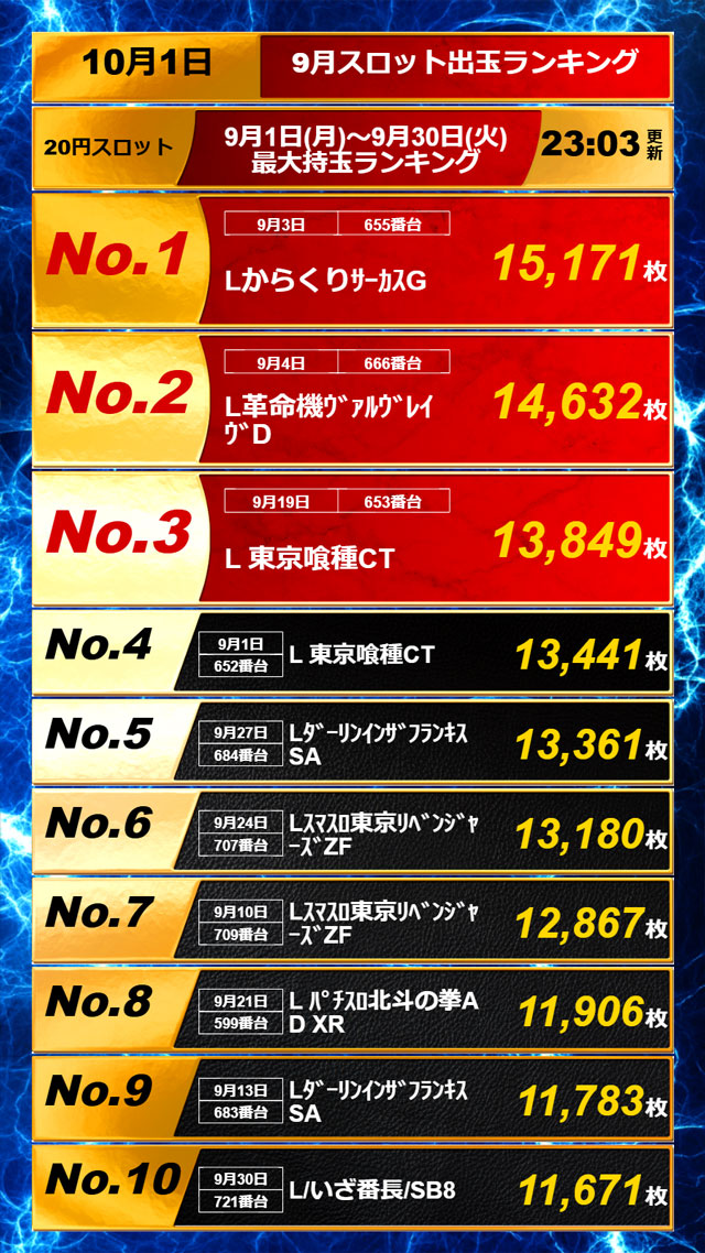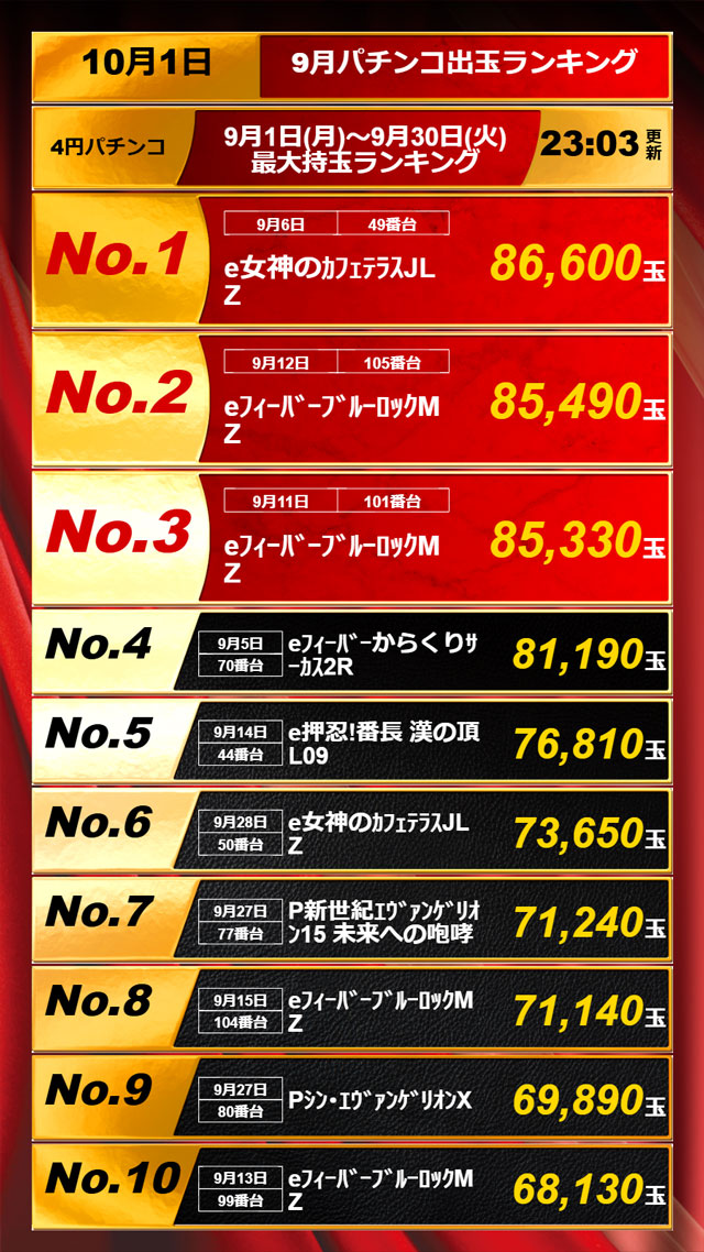 1位 10月10日(金) 2位 10月8日(水) 3位 10月9日(木)
