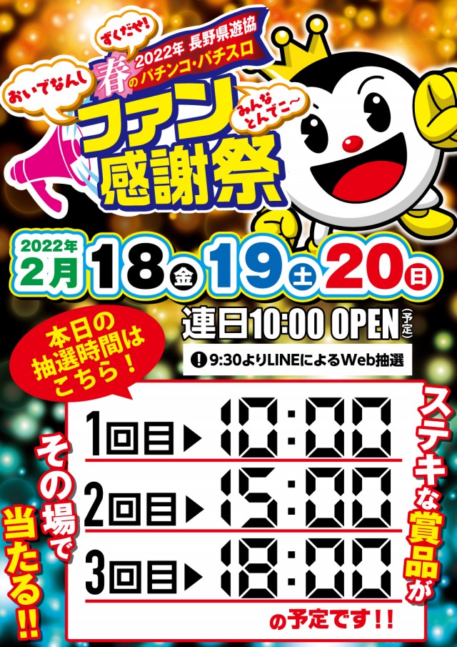 毎日9:15~抽選参加券配布 9:30~入場順番抽選会 |