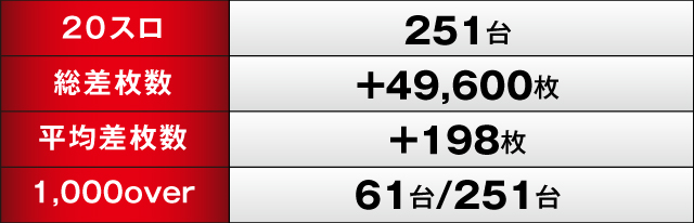 総差枚数+49,600枚、1,000オーバー61/251台という結果で終了した今回の「VEPPAN」。今回で危なげなく勝利を掴み取り、今後もさらなる活躍が期待できる同店。とくに人気機種に固まって注力していた傾向が確認できたので、次回以降実施の際はぜひチェックしてほしい! また、連勝記録がどこまで続くのかにも期待できるので、トコトン楽しみたい人にオススメしたいホールだ!