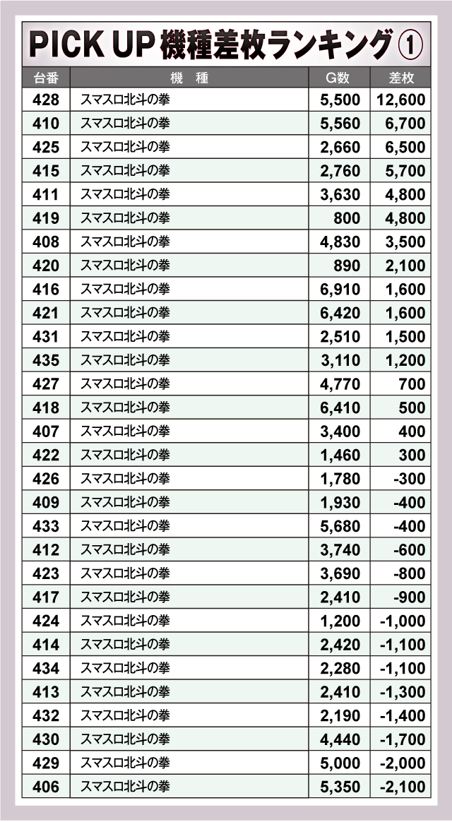 ※差枚数順に掲載しています。