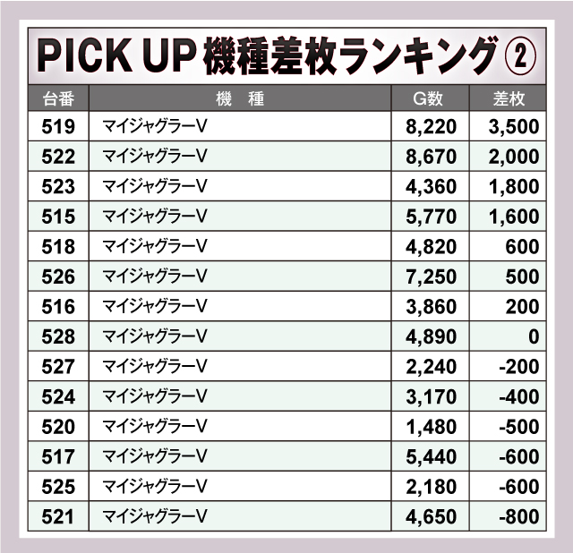 ※差枚数順に掲載しています。