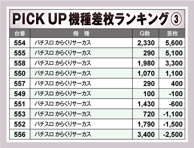 ※差枚数順に掲載しています。