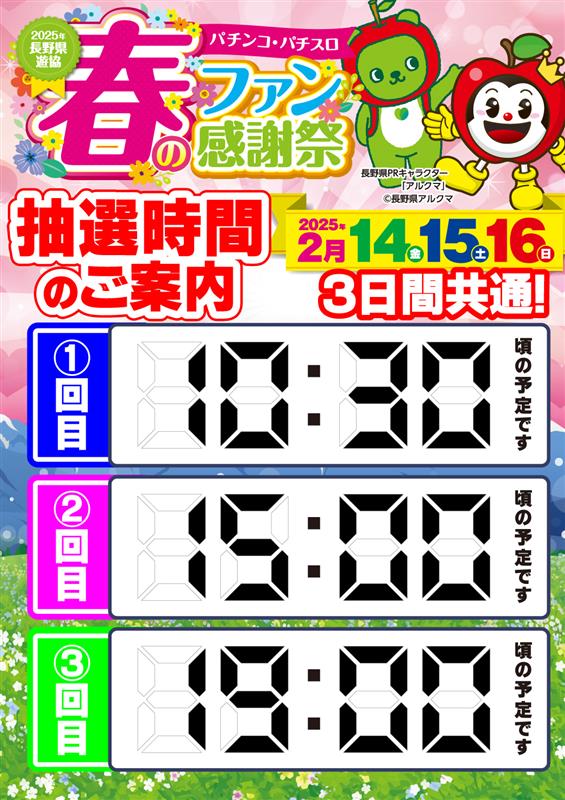 パチンコ9:55入場整理券配布 スロット9:30入場抽選会開始 |
