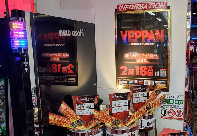 DMMぱちタウン取材班〝別班〟が威信を賭けて執り行う「VEPPAN」が、2月18日に長野県の「ニューアサヒ諏訪高島店」にて実施された。取材時、店内はたくさんのファンたちで賑わいを見せており、最終結果がどれほどのものになるのか、注目が集まった。その結果は…+57,500枚の大幅プラスで終了! 見事大勝利を果たした。ここからは、スロット全246台の詳細と合わせて、当日の店内の盛り上がりをチェックしていこう!