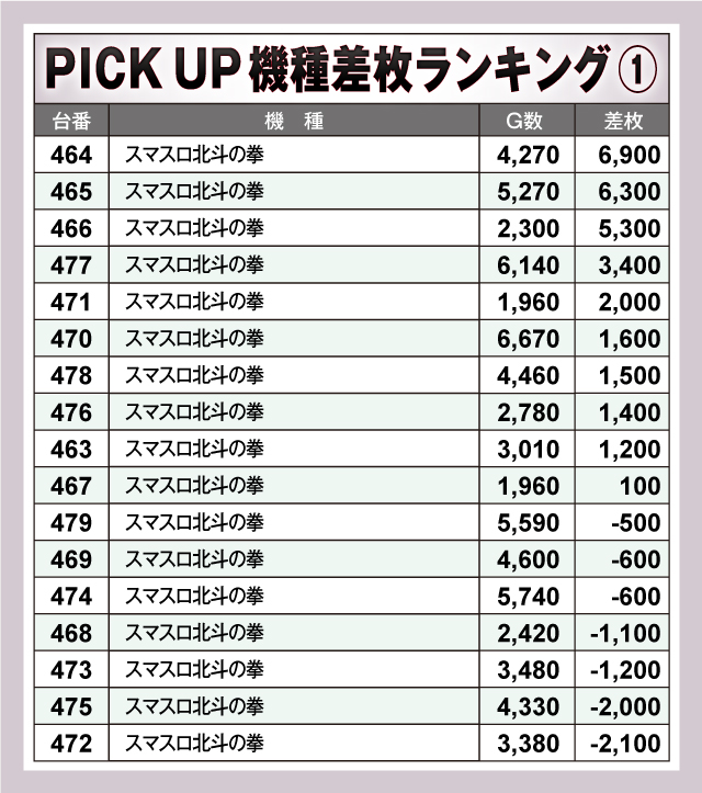 ※差枚数順に掲載しています。