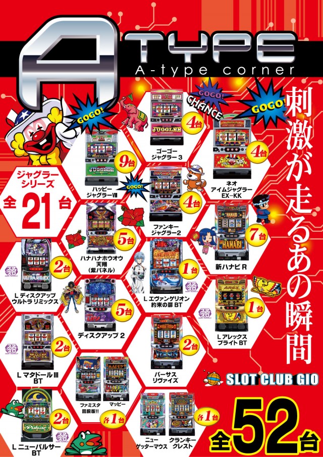 新台導入の本日はスロ専のAタイプでもお楽しみ下さい♪