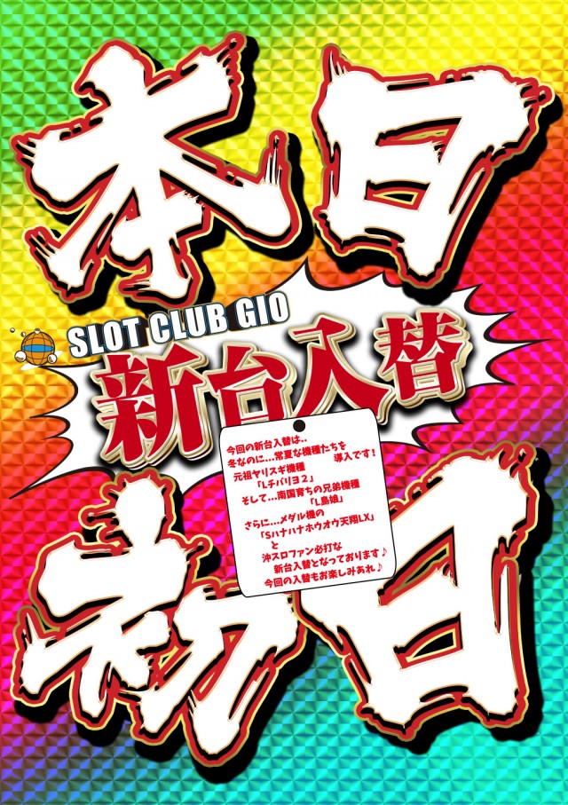 本日のスロットご遊技もGIO店でお楽しみ下さい♪