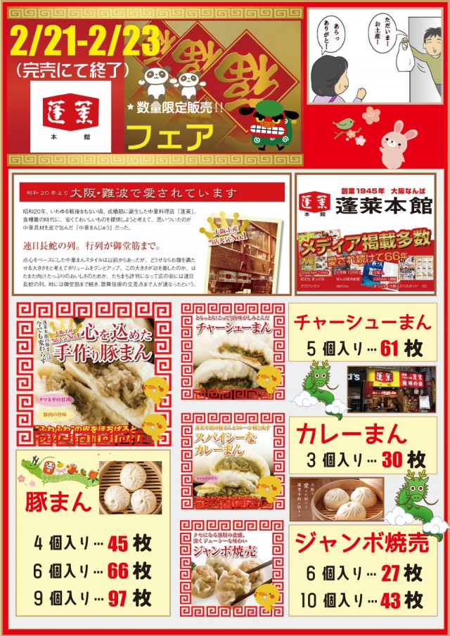 人気賞品企画【蓬莱本館フェア】開催です!
