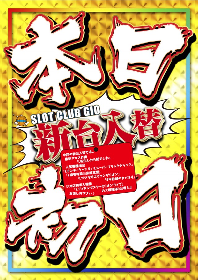 ジオ店の新台入替でスロットをお楽しみあれー♪