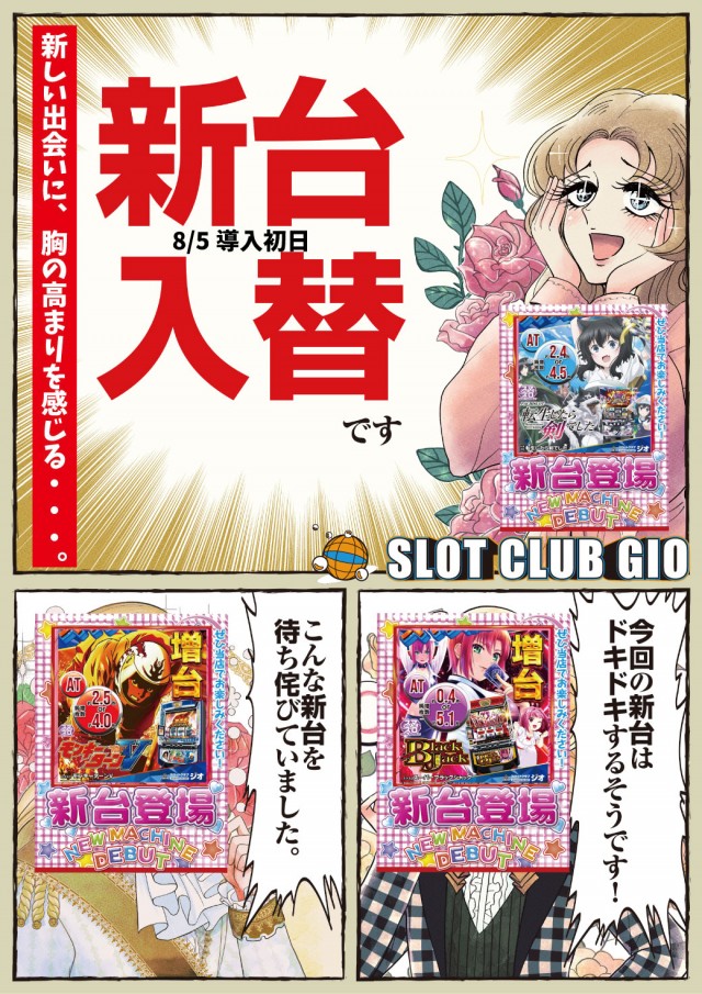 本日【8月5日】は…「新台入替Open☆初日」です!