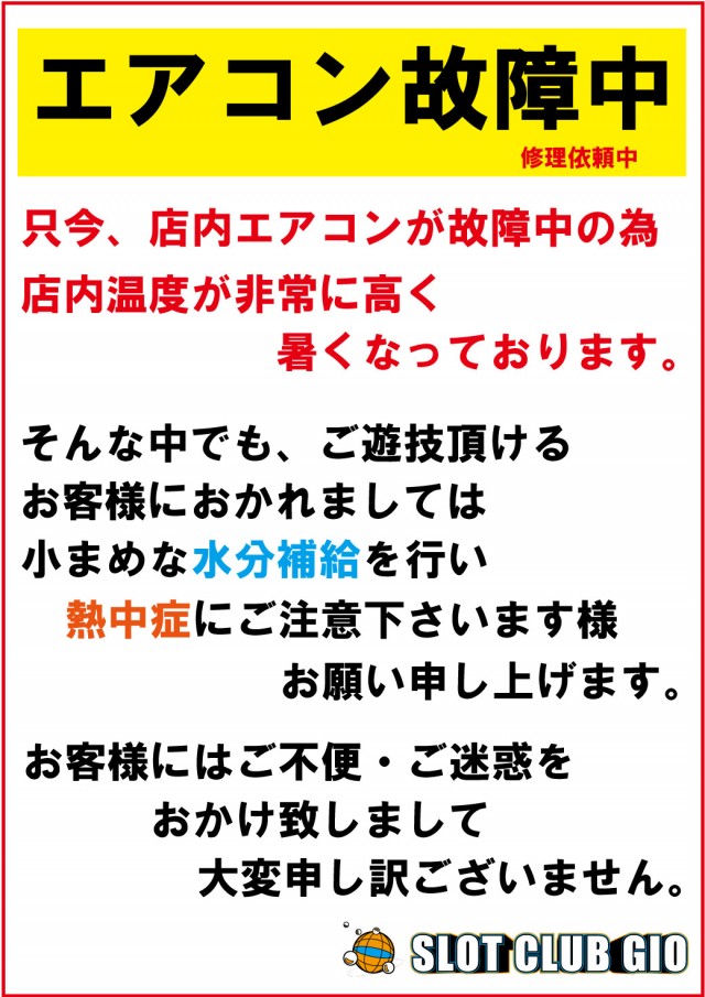 ご来店・ご遊技の際には、小まめな水分補給をお願い致します。