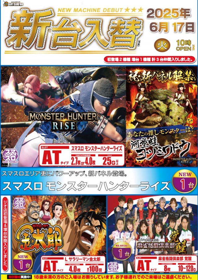 新台入替OPEN!初日は『6月17日(火曜)』予定!