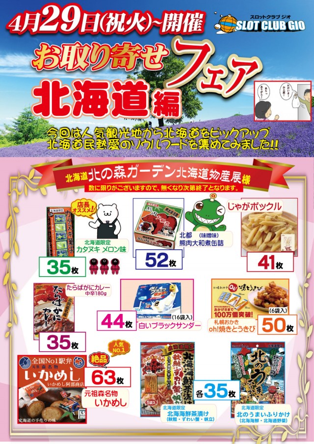 休日の1日を楽しんで頂く為【お取り寄せ賞品フェア】開催中です♪