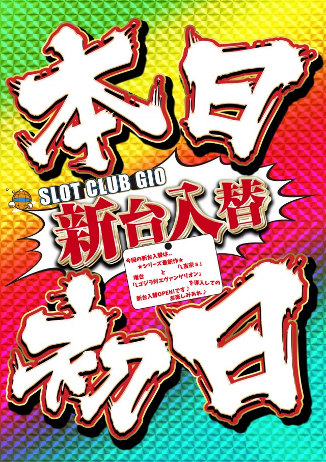 本日は【新台入替】に伴い、一部機種の配置変更や