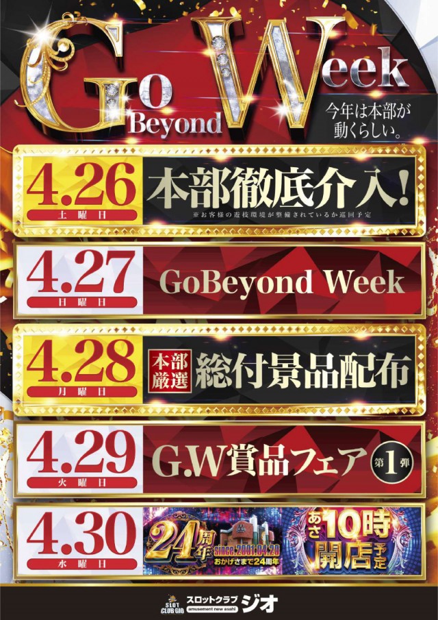 4月のSLOTご遊技はジオ店でお楽しみ下さい♪