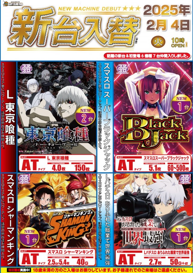 2025年2月4日[火曜日]...祝♪新台入替OPEN‼
