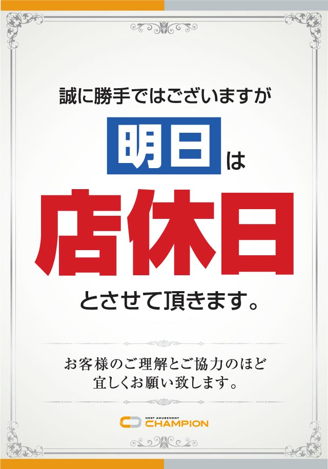 週末はチャンピオンに行くぜ❗❗抽選開始は朝9:30~🌈