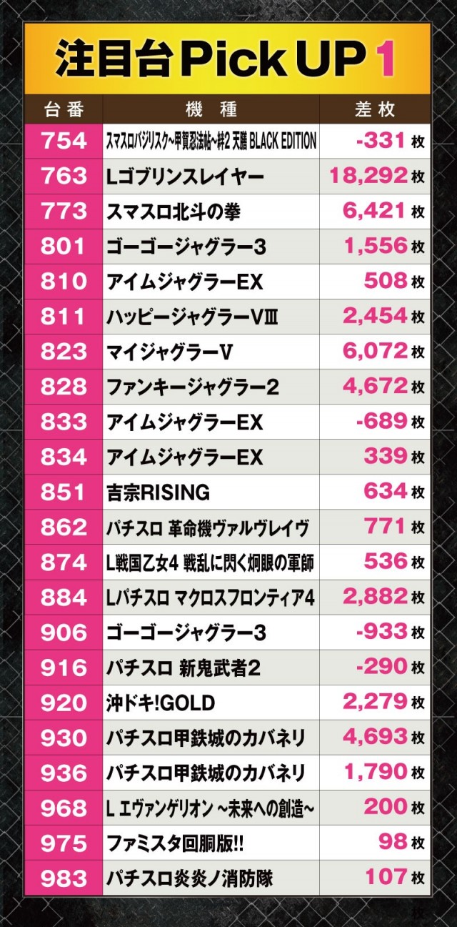 今回は様々な場所から好調台が誕生していた。やはり注目すべきはスマスロ!『Lゴブリンスレイヤー』は+18,292枚と凄まじい結果となっている。